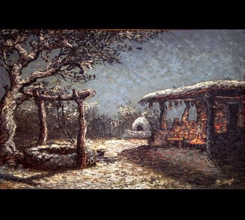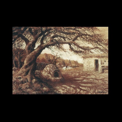 Spatula oil painting, sepia colours